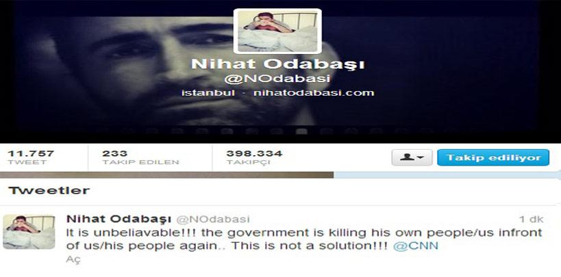 Taksim'de polisin müdahalesinin ardından Nihat Odabaşı, "Hükümet kendi insanları öldürüyor" diyerek CNN'e şikayet tweet'i attı.