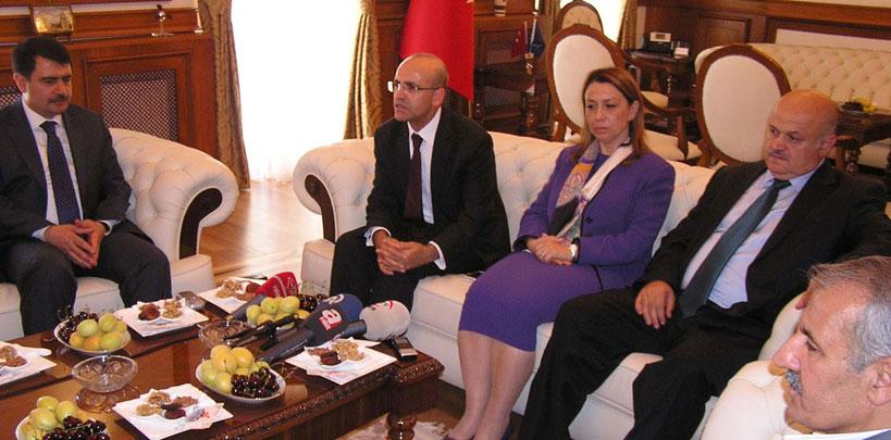 Vali Vasip Şahin, Bakan Şimşek'e te0pside kuru kayısı ve Malatya el dokuması halı hediye etti.