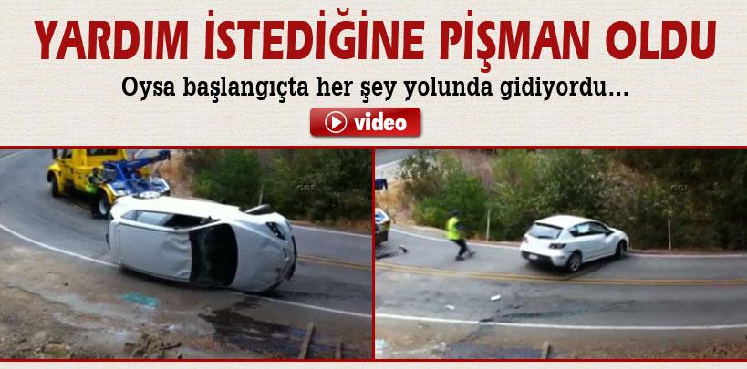 ABD'de yana devrilen otomobilinin kurtarılması için çekici çağıran kadın, yardım istediğin...