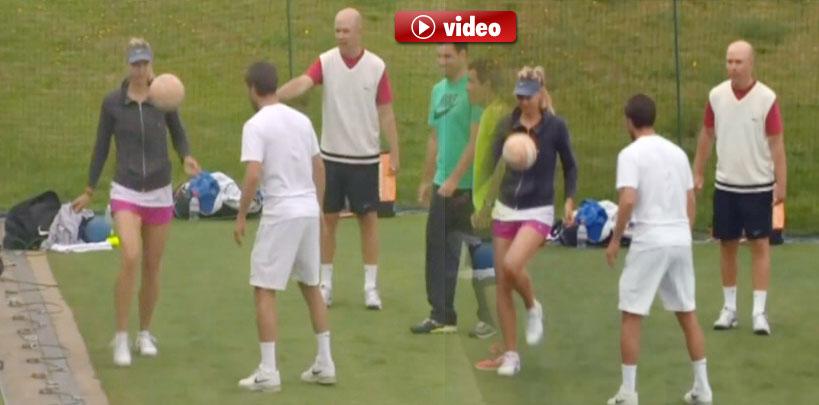 Ünlü Rus raket Maria Şarapova, Wimbledon Tenis Turnuvası için geldiği Londra'da futbol yetenek...