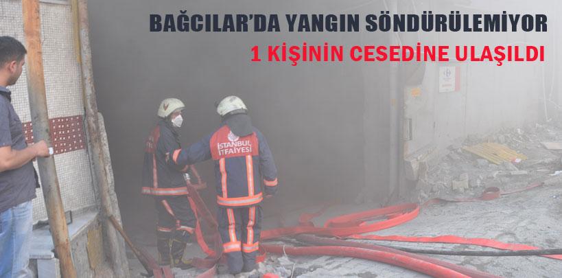 Bağcılar'da, bir mobilya imalathanesinde çıkan yangın devam ederken, itfaiye ekipleri yoğun du...