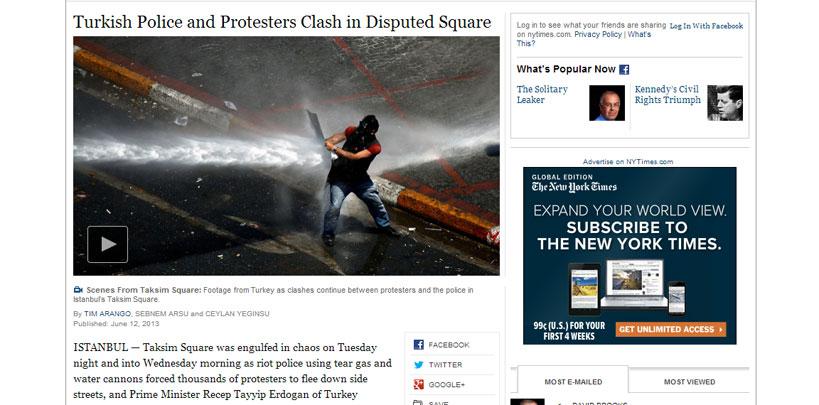 Taksim'de dün polisin müdahalesi yabancı basında geniş yer bulurken, dünyanın önde gelen tel...