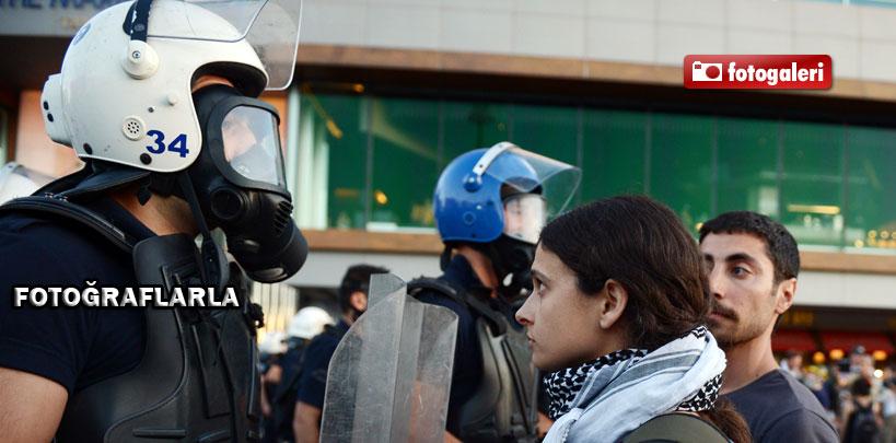 Taksim İstiklal Caddesi üzerinde toplanan ve polisin uyarılarına rağmen dağılmayan gruba poli...