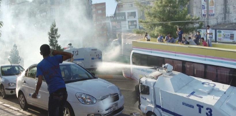 Diyarbakır Lice'de yaşanan olayı protesto etmek için Kurtuluş Parkı'nda toplanan gruba polis m...