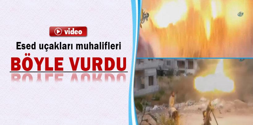 Ağır makineli tüfekle ordu güçlerine ait uçakları vurmaya çalışan bir muhalifin jetler tar...