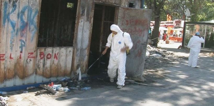 14 gündür eylemlerin sürdüğü Taksim Gezi Parkı'nda olası bir salgın hastalığa karşı ila...
