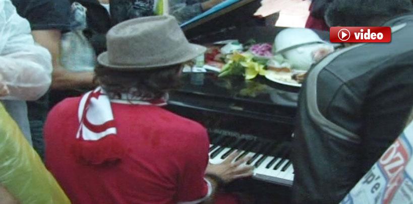 Alman Piyanist Davide Martello, sağanak yağışa rağmen piyanosuyla Atatürk Anıtı önünde gö...