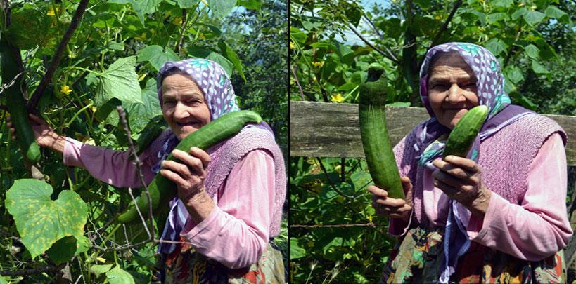 Ordu'da bir çiftçinin tarlasında yetişen yarım metre uzunluğundaki salatalık, görenleri şa...