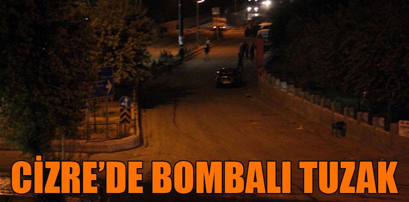 Şırnak'ın Cizre ilçesinde köprü üzerine yerleştirilen ve polis aracının geçişi sırasın...