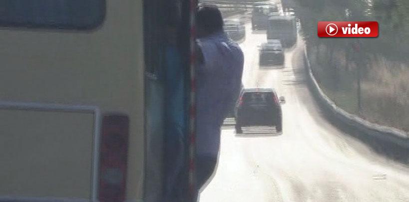 Bağcılar'da bir belediye otobüsünün arkasına asılarak yolculuk yapan üç çocuğun tehlikeli...
